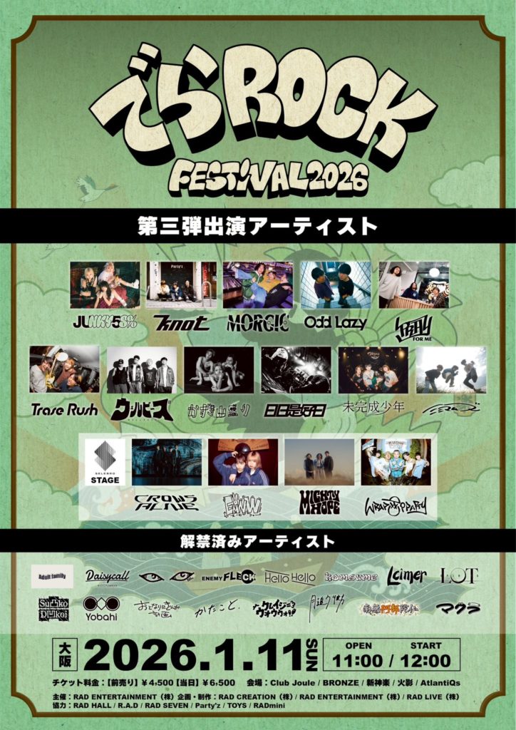 RAD CREATION & RAD ENTERTAINMENT presents 「でらロックフェスティバル 2026」において、Yogibo META VALLEY / HOLY MOUNTAINを運営するSELEBROがオーガナイズするコラボステージが発表。